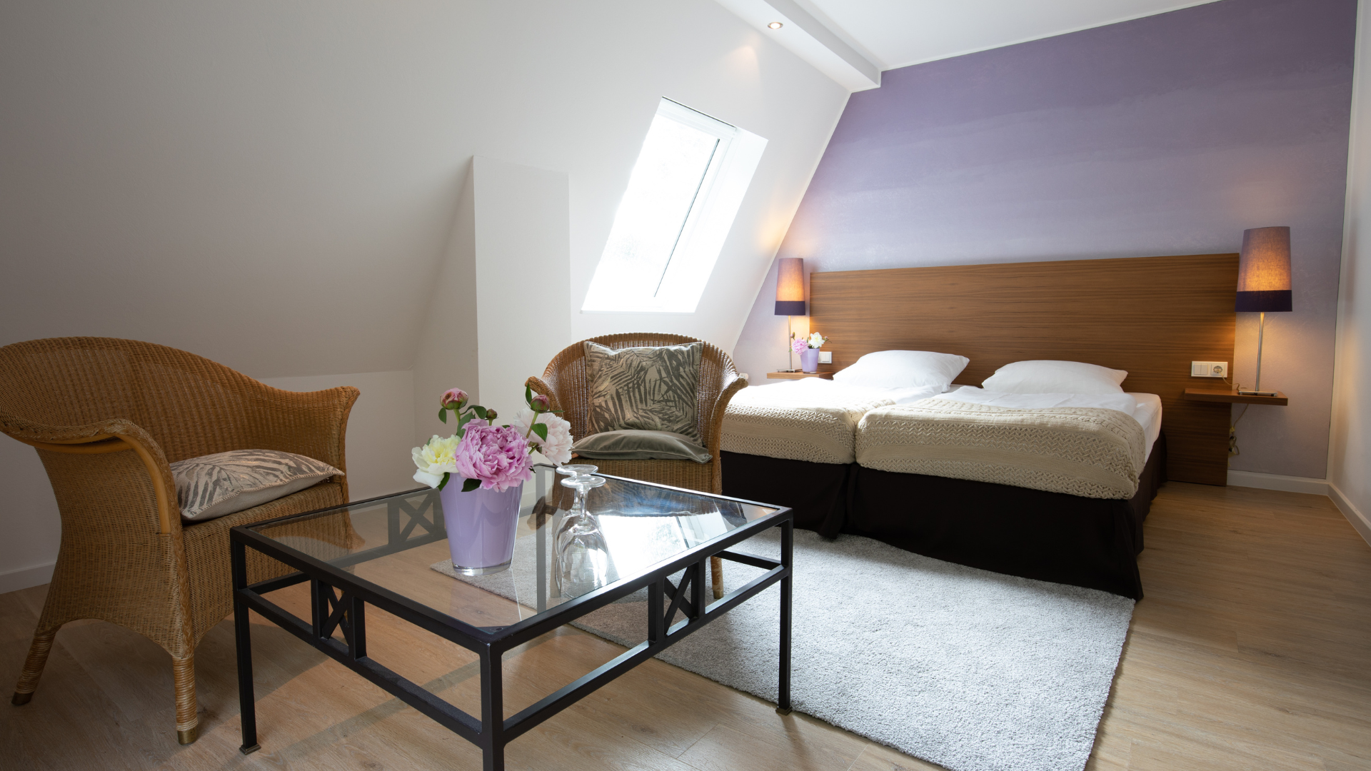 Einfach entspannend. Mit Blick in den Garten oder Wald. Die Dachschräge vermittelt Gemütlichkeit. Ausgestattet mit einem Doppelbett, von dem aus Sie die Blätter durch die Fenster tanzen sehen können. Ein Schreibtisch mit Korbsessel. Und ein modernes Badezimmer mit Walk-in Regendusche. Für einen rundum schönen Aufenthalt. Allein oder zu zweit.